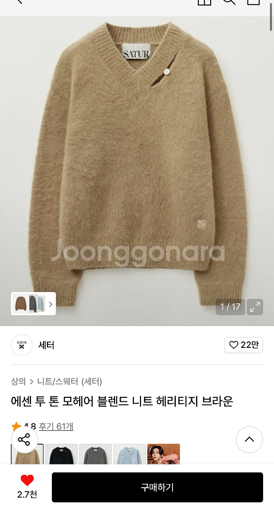1. 새터 - 에센 투톤 모헤어 블렌드 니트 (헤리티지브라운) m 실착 3-4회 이며 새터 옷은 몇번 안 입어봤지만 니트 맛집으로 알고 있습니다 모헤어 재질이라 헤어리한 매력이 있는 제품입니다 같은 제품으로 그레이색도 갖고 있는데 한개는 정리하려고 판매하게 되었습니다 2. 코프위 - 써니 웨이브 스트라이프 니트 m 실착 : 3-4회 정도 유튜브 “현킴”채널에서 보고 구매했었는데 6만원대의 가격대여서 재질이 아주 고급지진 않으나 디자인이 꽤나 괜찮습니다 실측보다 기장이 조금 더 긴 느낌이 있습니다 3. 노매뉴얼 - 크롭 헤어리 니트 s 실착 : 2회 이 제품도 무신사에서 인기가 많았던 제품인걸로 알고있네요. 앙고라 재질이라 따뜻하고 색감이 괜찮습니다 착용횟수가 적기때문에 당연히 상태는 좋습니다 4.르마드 - 비건래더 절개자켓 브라운 2size 2차구매한 후 실착 : 1회 이건 중고로 2차구매한 제품인데 소매부분과 어깨부분이 까져있더라구요. (사진 올려놓았습니다) 따로 고지도 안해주신... 저는 상태에 크게 민감하지 않아서 상관은 없었으나 제 이미지랑은 잘 어울리지 않아 재판매하게 되었네요 위에 “4벌 합쳐서 일괄 12만원”에 판매합니다 (12만원이면 새터 한벌값도 안되네요) 옷장 정리 겸 저렴하게 처분합니다 :) 직거래 택배거래 모두 가능합니다 직거래 시 난곡사거리 근처에서 거래 희망하며 택배거래 시에는 택배비는 별도인 점 양해부탁드려요 :)