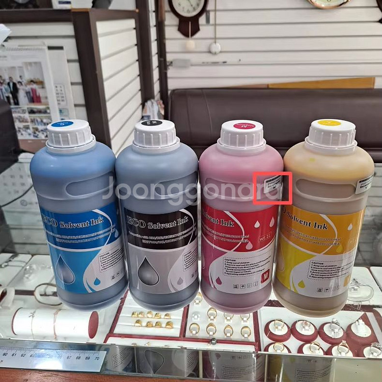 엡손 L805용 잉크 4개 세트입니다. 블루, 옐로우, 핑크, 브라운 색상으로 구성되어 있고 상태 양호해요. 프린터 교체로 인해 판매합니다. 엡손L805 솔벤트 잉크 1L. 50000원 100Ml. 병당 7000원