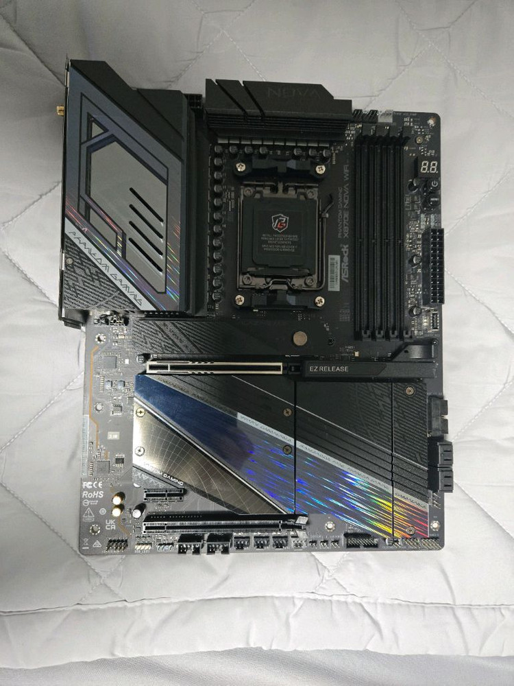 ASRock X870E NOVA WIFI 메인보드 팝니다. 기변으로 인해 판매하는것이며 사용한지는 1년정도 된거 같습니다. 사용시 983D cpu 사용하였으며 이슈는 없이 잘 사용했습니다. 구성품 모두 들어있고 구성품중 wifi만 사용했습니다. 상태는 매우 좋으나 사용기간이 길어 사용감은 있는 편 입니다.