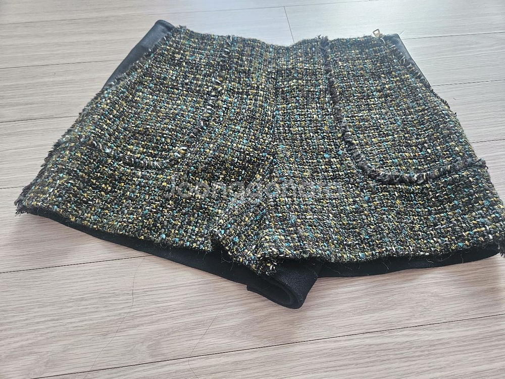 SYSTEM 트위드 반바지입니다 뒷면은 모직(검정)으로 되어 있어요. 아래제품과 같아요 55사이즈에요.허리는 26에겐 넉넉하게 맞아요.
