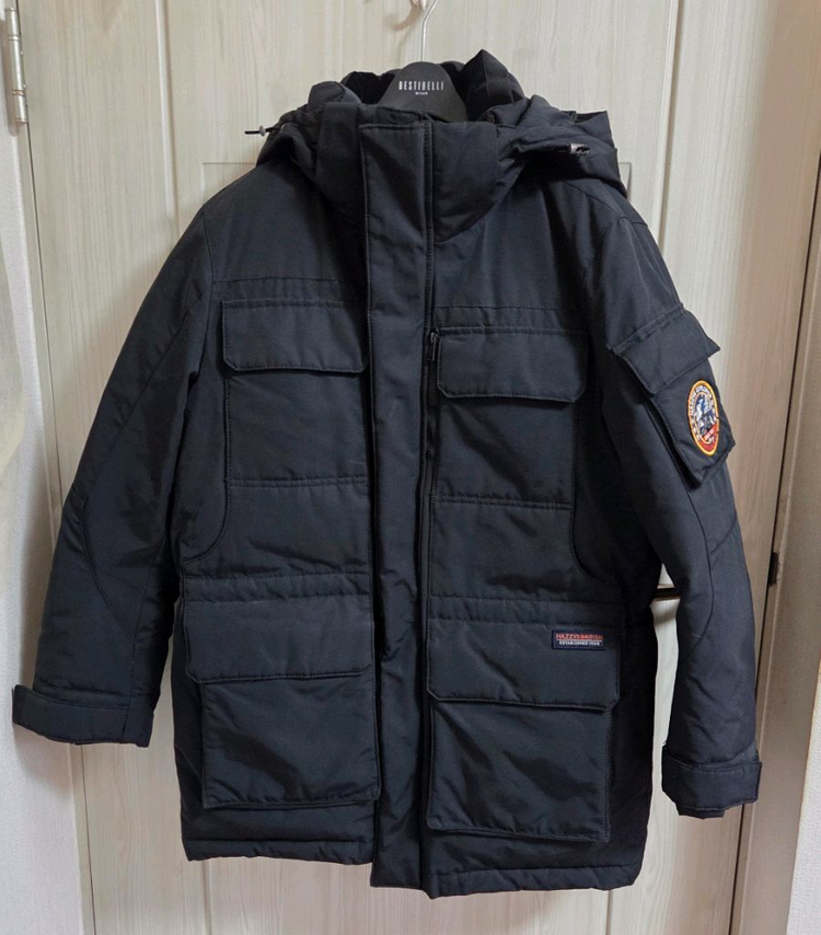 헤지스 덕다운 패딩입니다. 색상은 블랙이고, 사이즈는 95입니다 높은 솜털 비율(90:10)과 700 필파워를 자랑하는 고성능 덕다운으로, 한겨울에도 따뜻합니다. 유행을 타지 않는 베이직한 블랙 컬러에 넉넉한 수납공간(카고 포켓)이 특징입니다. 캐주얼룩, 아웃도어룩 모두 활용하기 좋습니다. 소매 안쪽에 시보리(이너 커프스)가 있어 바람을 완벽하게 차단해 줍니다. 후드 탈부착 가능합니다. 세탁 후 보관 중이며 전체적으로 상태 준수합니다. 저렴하게 드리며 가급적 직거래 희망합니다 반품은 어려워요 😂