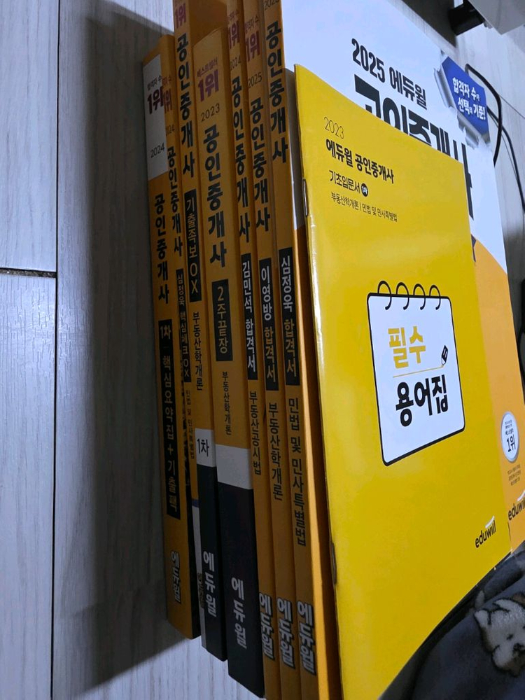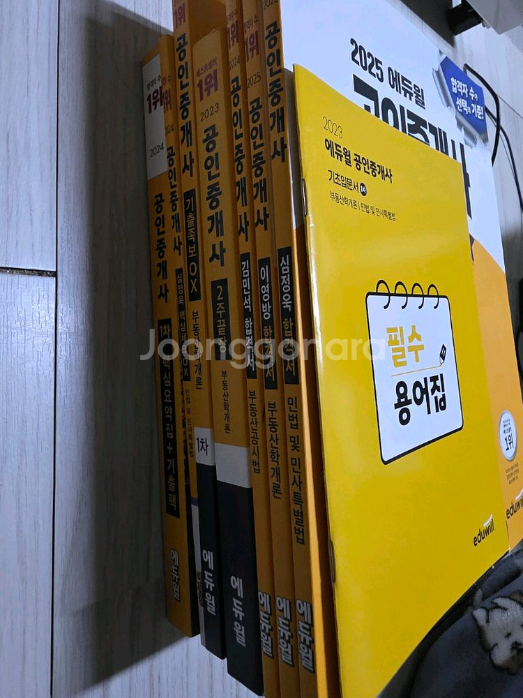2026년 공인중개사 시험 대비 필수 용어집과 관련 교재들이에요. 깨끗한 상태로 공인중개사 시험 준비하시는 분께 유용할 것 같아요! 모두 새책 입니다. 2023 2주끝장 부동산학개론 [기출이론+기출지문 빅데이터] 원가:29,000=>중고가:10,000 2024 1차 핵심요약집+기출팩 [부동산학개론+민법 및 민사특별법] 원가:33,000=>중고가:12,000 2024 심정욱 핵심체크OX 원가:18,000=>중고가:7,000 2024 김민서 합격서 원가:16,000->중고가:4,000 2025 이영방 합격서 원가:18,000->중고가:7,000 2025 심정욱 합격서 원가:18,000->중고가:7,000 부동산학개론기출족보OX 원가:22,000->중고가:9,000 이 외에 사진에 등록 되지 않은 새 책이나 필요한 용어집을 상품으로 드리겠습니다. 구매의향 있으신 분은 연락 주시길 바랍니다. 오후 6시전까지 입금 완료시 바로 택배 진행 합니다.