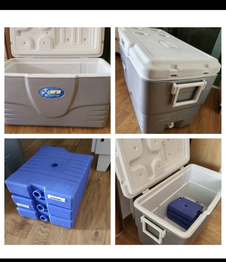콜맨 대형 아이스박스(75×38×46cm) 70리터 이상될거같은데 리터 표시는 안되있어요 깔끔하고 튼튼함 컵받침도 설치되있어서 매우 편리함 저렴하게 6만원에 드릴께요 그외 텀블러등등 12가지 모두 덤이예요 필요하신분은 요긴하게 쓰실거같아요