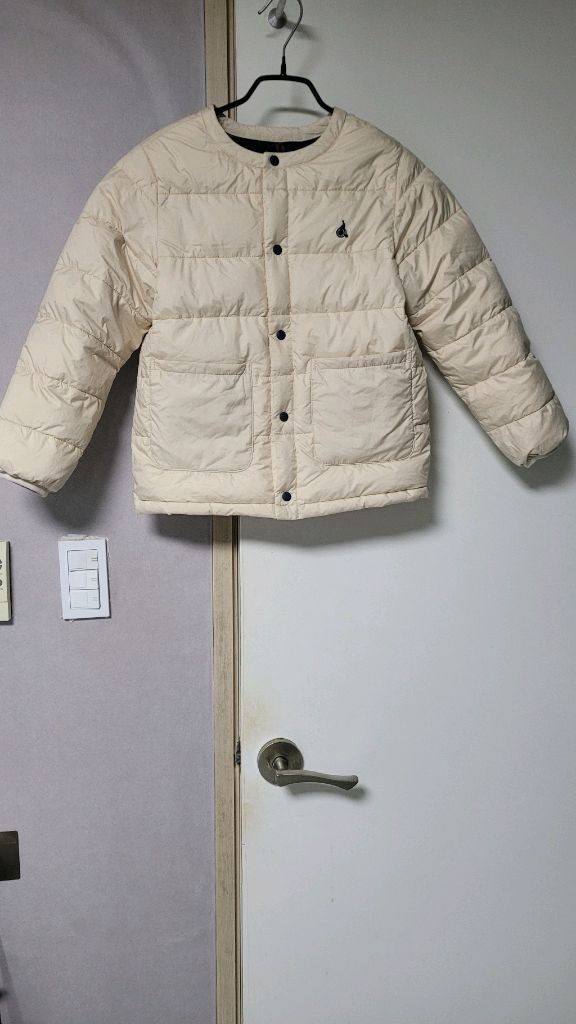 빈폴키즈 아이보리 패딩 140사이즈입니다 - 전체 치수 가슴둘레 71cm - 사용 연령 9~10세 권장 거의 안입어서 상태 좋아요.올해산거에요.지금도 ㅠㅏㄴ매중인 옷 이에요 가볍고 따뜻해서 아이가 편하게 입을 수 있어요 충전재는 오리털 80%, 깃털 20%로 되어있습니다