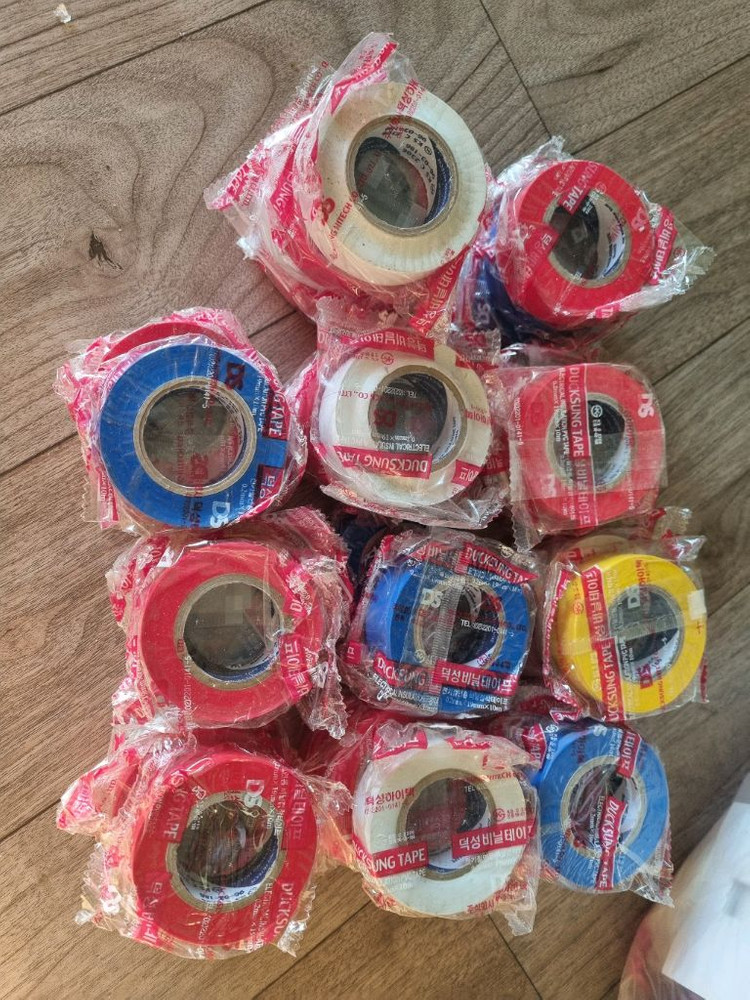 다양한 색상의 절연테이프에요. 레드, 블루, 옐로우, 그린 등 여러 컬러가 있어서 필요한 색상으로 선택 가능해요. 새 제품 상태로 깨끗합니다. 0.2mm×19mm×10m 34롤 입니다