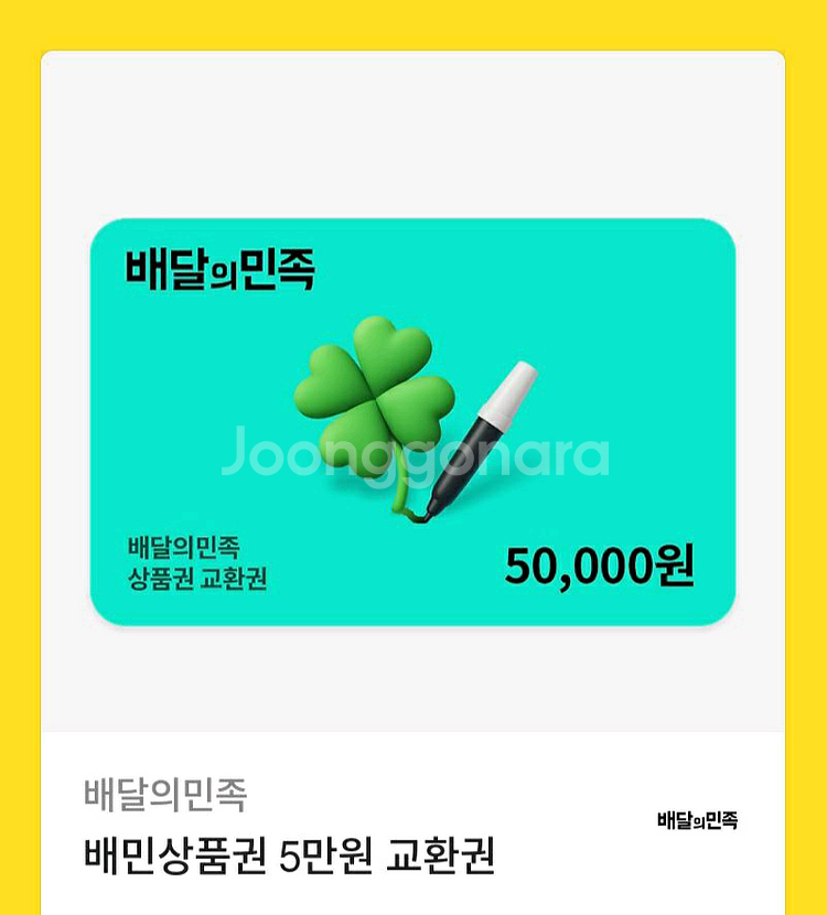 개인정보(거래정보)를 주고받는 행위는 사기에 노출될 수 있으므로 즉시 중고나라로 신고해 주세요배달의 민족, 배민 5만원권 -46500원 받으신후 바코드 노출로 환불 안됩니다 받으신후 바로 등록 가능한분이 구매해주세요 ㅇ1ㅇ 4714 88ㅇ1 문자거래 가능해요 등록후 분할사용가능.기한 1년 기간연장불가,환불불가. 꼭 구매하실분만 연락 부탁드립니다