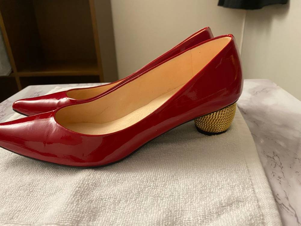 스튜어트 와이츠먼 레드 에나멜 펌프스입니다 상태도 굿이에요. 골드 굽 너무너무 이뻐요! 굽은 4cm이고 미국에서 $400 정도 주고샀어요. 사이즈는 6.5 N M입니다 (235)