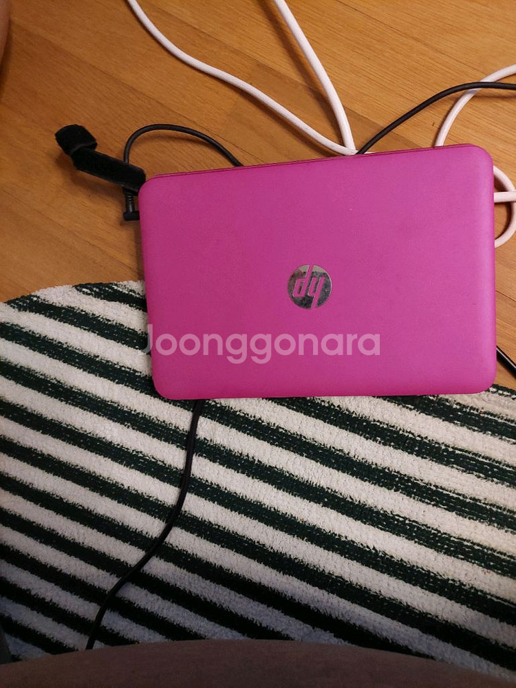 HP 브랜드의 핑크색 미니 노트북이에요. 컴팩트한 사이즈로 휴대성이 좋고, 정상 작동하는 상태입니다. 사용감은 있지만 깔끔하게 관리된 제품이에요. 전원뽑아야 작동 가능합니다. 그외 잘됩니다