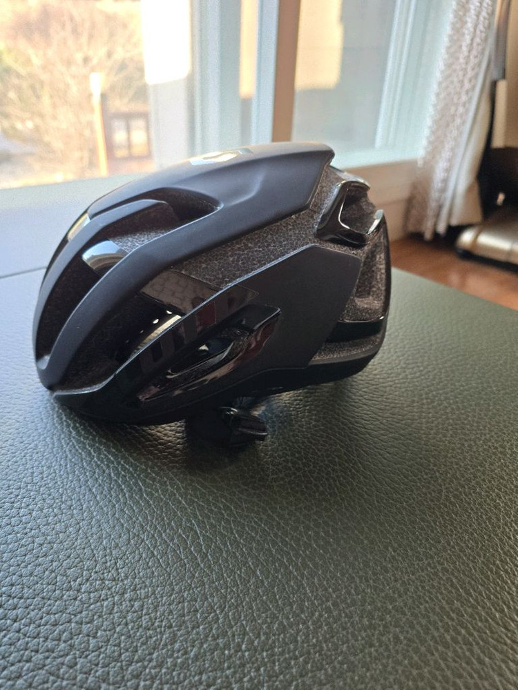 스캇 슈퍼라이트 자전거 헬멧이에요. 깔끔한 검정컬러로 상태 양호하고 실용적입니다. 안전하고 가벼운 디자인으로 라이딩하기 좋아요. 사이즈 s