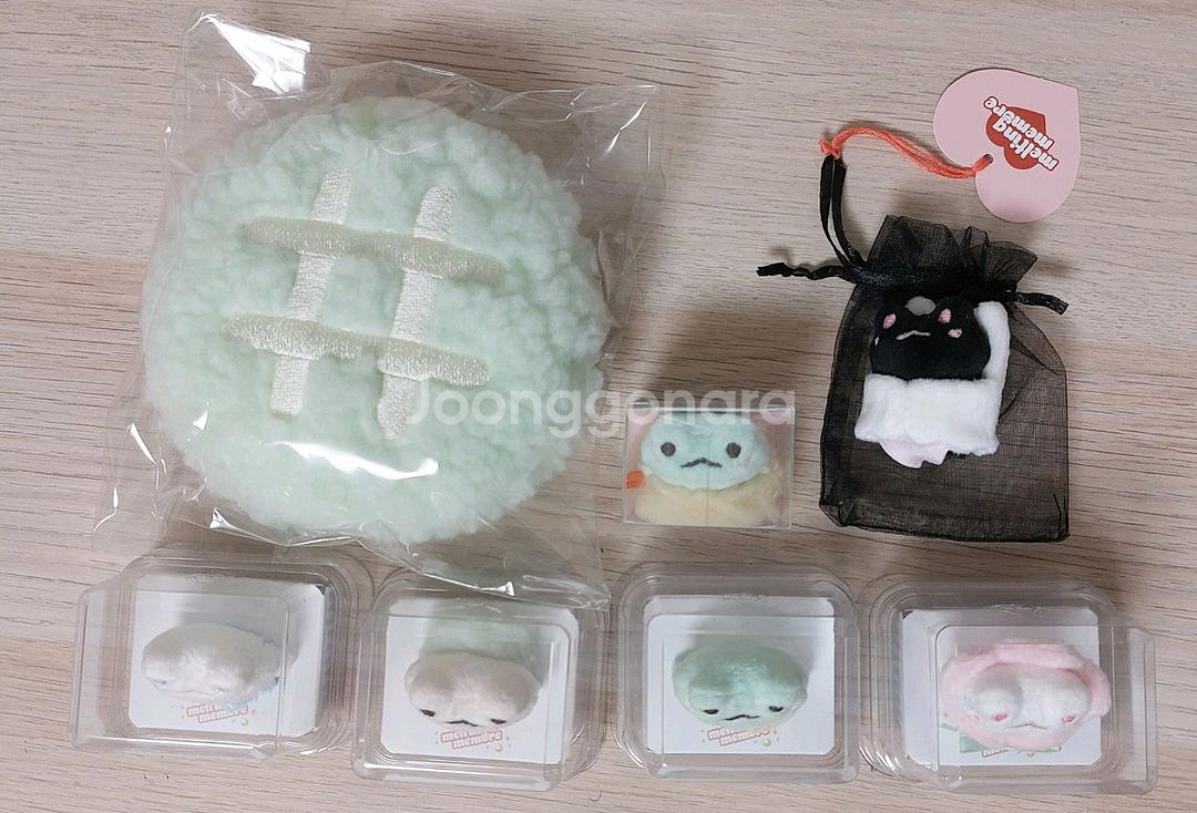 멜팅미모어 케구르 인형 6개+메론빵쿠션 일괄 판매합니다 전부 케이스에 넣어서 그늘 전시만 했습니다.(현재 암실보관 중) 검은색은 투명케이스가 없어서 다른 케이스에 넣어 전시하던 물품이며 핑크색 옷 서비스로 드려요 메론쿠션 미개봉입니다