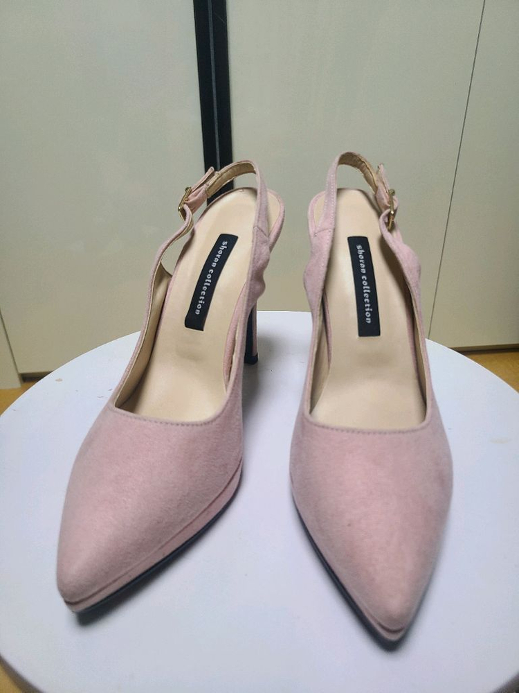 여성스러운 핑크 스웨이드 힐 슬링백 새상품입니다. - 사이즈 : 240mm - 굽높이 : 10cm, 앞가보시 : 1.5cm 스웨이드 소재로 부드러운 느낌을 줍니다 슬링백 디자인으로 편안하게 착용 가능하며 뒷부분 스트랩으로 사이즈 조절 가능합니다 은은한 핑크 색상이어서 어느 옷에나 잘 어울립니다. 착화 한번도 안한 새상품인데요 마지막 사진에 나온것처럼 이염이 있어서 다른것보다 더 저렴하게 판매합니다 *교환,환불 안돼요~