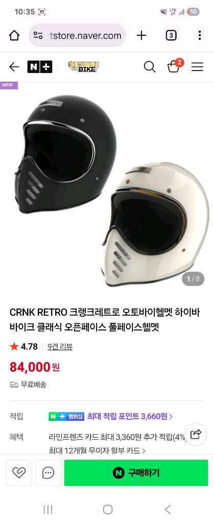 개인정보(거래정보)를 주고받는 행위는 사기에 노출될 수 있으므로 즉시 중고나라로 신고해 주세요크랭크리로 브랜드의 클래식한 디자인 오토바이 헬멧이에요. 블랙과 화이트 두 가지 색상으로 구성되어 있고, 빈티지한 느낌의 멋진 디자인입니다.