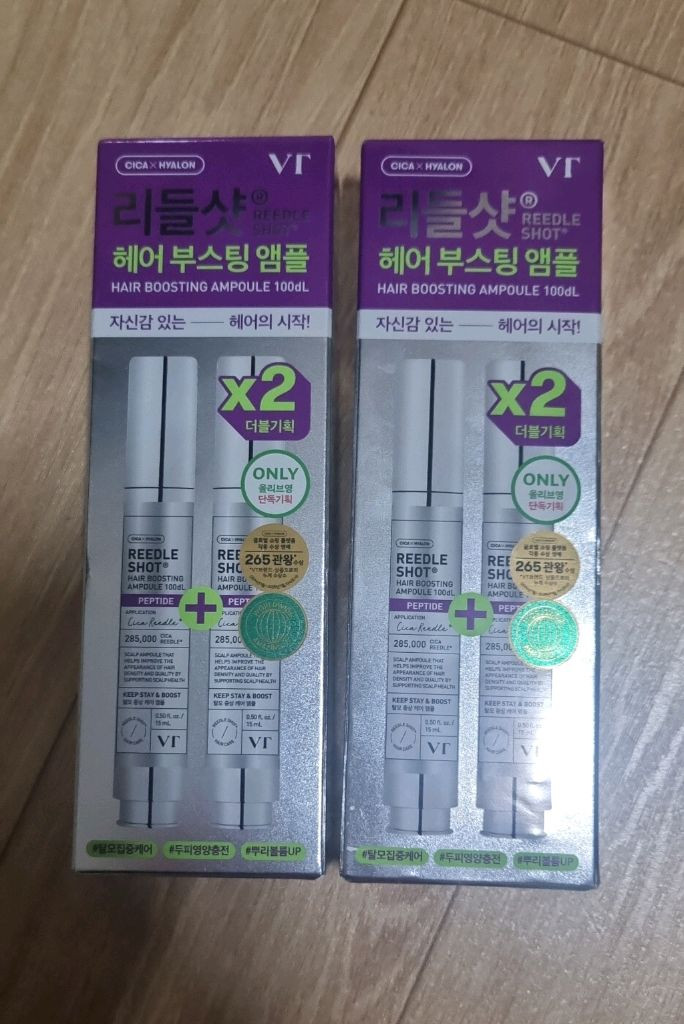 VT 리들샷 헤어 부스팅 앰플입니다 - 탈모 증상 완화 기능성 화장품입니다 - 두피 흡수량, 속도, 깊이 개선 효과가 있습니다 - 소비기한은 2028년 9월 3일까지입니다 https://m.oliveyoung.co.kr/m/goods/getGoodsDetail.do?goodsNo=A000000231146 글 잘 읽고 주문해주세요‼️ 2박스 중 한박스만 개봉하여 낱개 한개 사용함 1) 새상품 15,000원 2) 사용한 제품 13,000원 - 낱개 한개 2회 손등에 사용 ( 뚜껑에 스티커 붙여 구분함 ) - 개별 구매 가능합니다 2회 사용 5,000원 새상품 8,000원