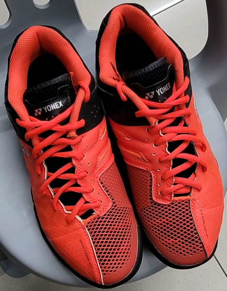 요넥스 쿼트로 핏 배드민턴화입니다. 빨간색과 검정색 조합입니다 디자인이 예뻐서 샀는데, 발에 잘 안 맞아서 판매합니다. 실내에서 5번 정도 신어서 상태 좋습니다. - 접지력이 우수합니다 - 발의 피로감을 덜어줍니다 반품 환불 교환 안됩니다
