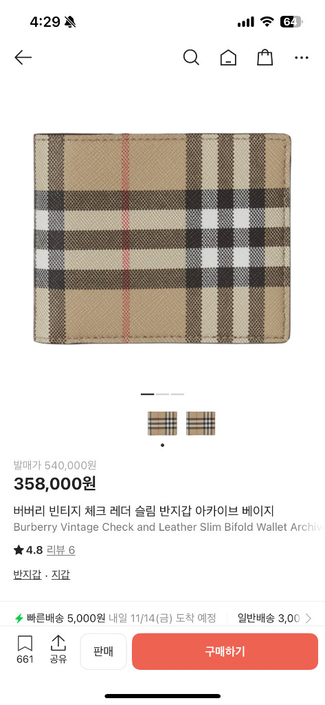 버버리 빈티지 체크 반지갑 (모델번호 8065635)