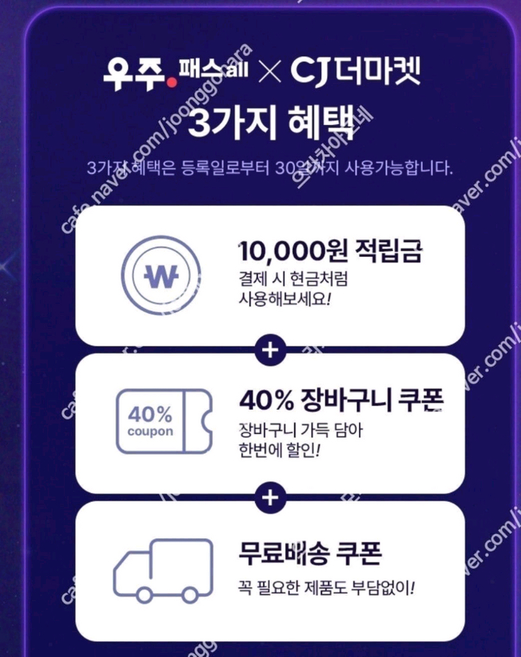 ## 우주패스 CJ더마켓 3종 쿠폰 : 00원 ## 유효기간 : ~2025.12.31 ## 거래후 핀번호 노출로 환불은 불가 (캡쳐본전송) O I O 8 I I 4 팔 9 I 9