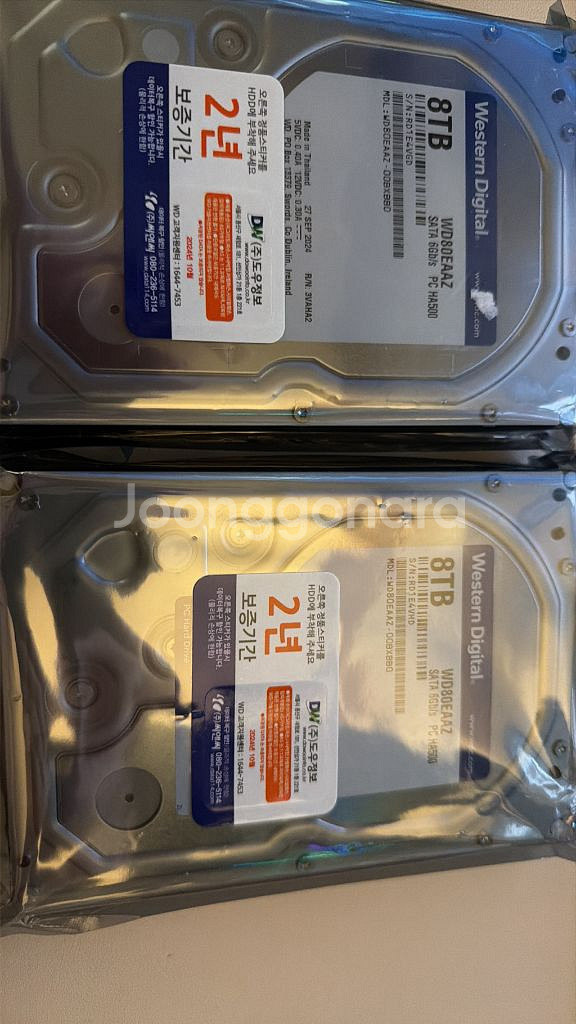 WD Blue 8TB 내장형 하드디스크 새상품 팝니다. 웬디 블루 하드디스크 8테라 (WD80EAAZ) 구매후 보관한 새상품이며, 보증기간 남아있습니다. 2개 보유중. 개당 20 우체국택배로 꼼꼼히 포장하여 당일접수 해드리겠습니다. 단순변심으로인한 반품은 불가합니다. 개봉시 반품불가합니다. 연락주세요.