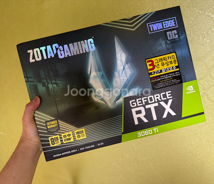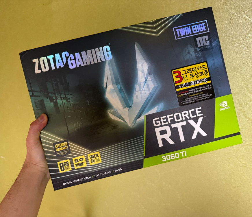 zotac 3060ti 미개봉입니다. 미개봉이라 뭐 딱히 할 말이… 서브컴 세팅할 때 쓰려고 쟁여뒀는데 필요없을 것 같아서 판매합니다. 기타 문의 챗 주세요.