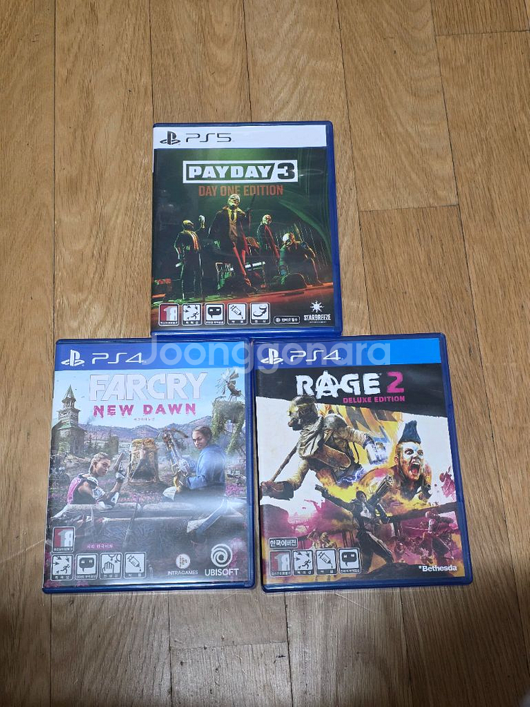 PS5/4 게임 페이데이3/레이지2/파크라이 뉴던 일괄 로팝니다. 코드는 모두 사용했습니다. .플레이는 하지 않고 보관만 했네요. .반값택배 포함입니다.
