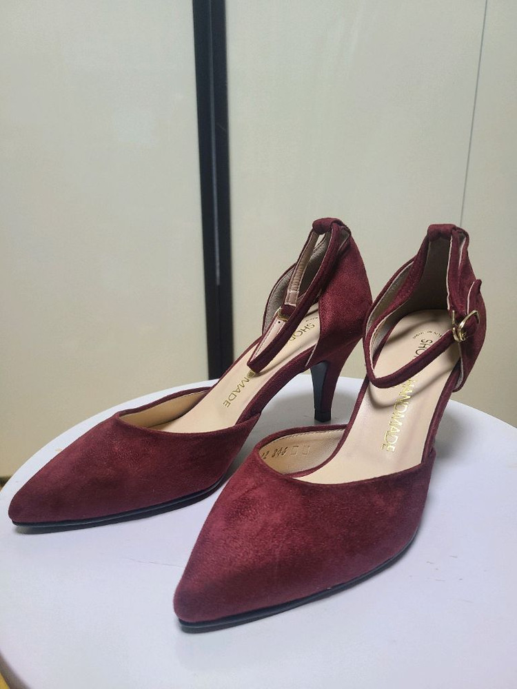 고급스러운 버건디 색상의 스웨이드 힐입니다 - 사이즈 : 230mm - 굽높이 : 8cm 특별한 날 포인트로 신기 좋고, 착화감도 편안합니다 펌프스 디자인에 발목 스트랩이 있어서 더욱 안정감 있어요. 특별한 날 포인트 주기 좋은 슈즈입니다. *교환,환불 안돼요~