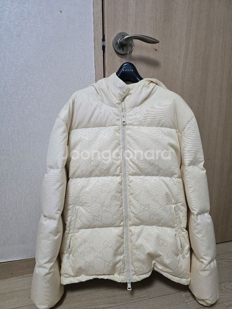 개인정보(거래정보)를 주고받는 행위는 사기에 노출될 수 있으므로 즉시 중고나라로 신고해 주세요구찌 시그니처 GG 패턴이 들어간 고급스러운 여성용 패딩점퍼예요. 아이보리 컬러로 어떤 옷과도 잘 어울리고, 후드가 있어서 실용적이면서 스타일리시해요. 상태 양호한 중고 제품입니다. 작년480 판교구매 실착2회