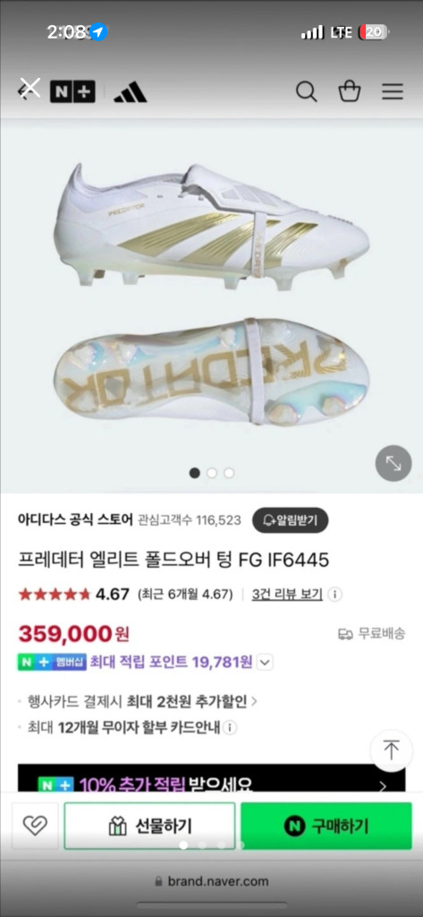 개인정보(거래정보)를 주고받는 행위는 사기에 노출될 수 있으므로 즉시 중고나라로 신고해 주세요프레데터 엘리트 FG 모델로 새상품입니다 사이즈는 245이며 풀박스로 그대로 드려요 아디다스 코리아 정품
