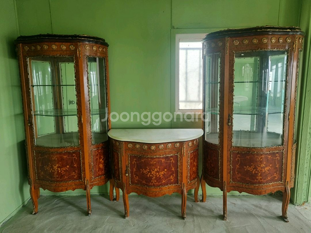 이태리 명화가구 유리장식장 세트입니다 보시다시피 상태는 좋아요