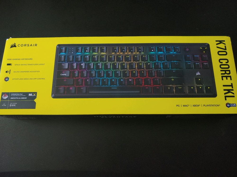 K70 RGB CORE TKL 적축 구매날짜 2025.2.26 구매당시가격 129,900 구매처 커세어 공식스토어 씨알텍 실사용기간 30분 제품 풀박스 그대로 판매가격 75,000 거래방법 판매자 집앞 직거래 or 택배거래