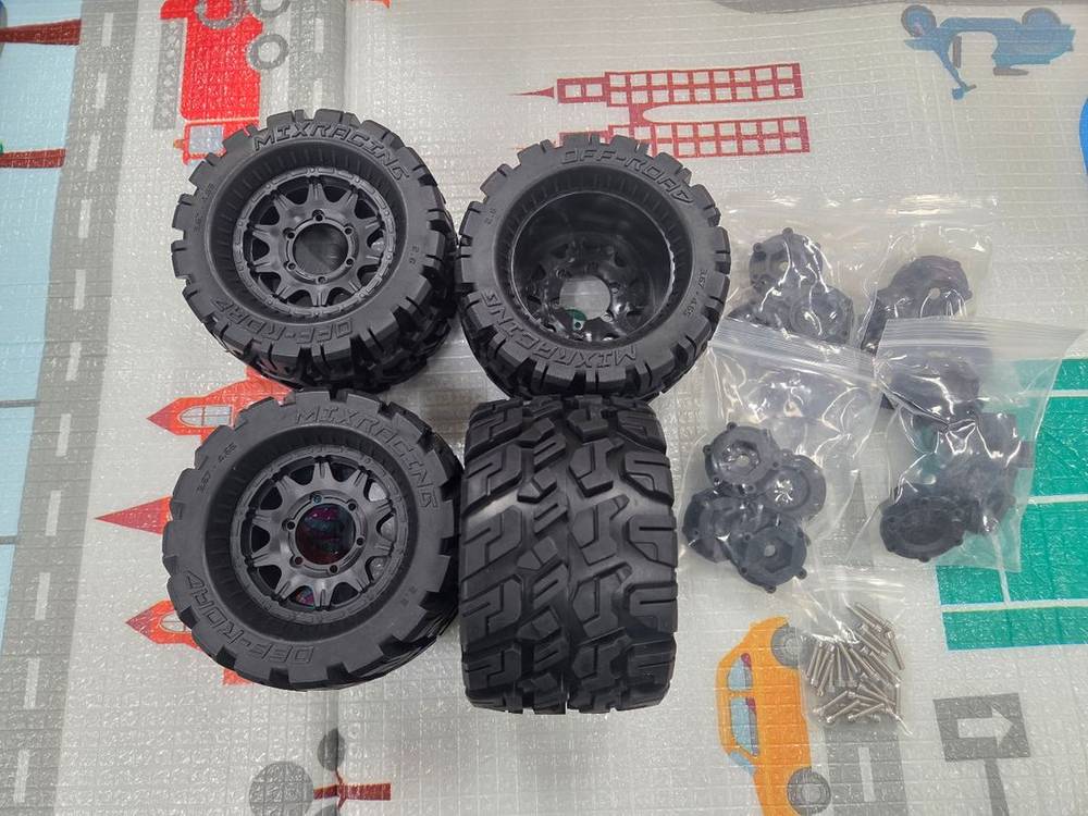 MIX RACING 오프로드 타이어 휠 세트입니다 - 휠 4개, 타이어 4개, 12mm(0.47인치)/14mm(0.55인치)허브 포함 - 험로 주행에 적합한 디자인 - 접지력과 내구성이 뛰어납니다 - 직경 4.65인치 내경 3.67인치 너비 2.8인치 - 미사용제품 ☆질문사절, 찔러보기 금지 ☆구매하실분만 연락주세요 ☆직거래 및 택배 가능 ☆문고리요청시 택배보관함 거래가능 ☆네고불가 ☆반품 및 환불 불가 ☆택배시 별도 3,000원 추가 (반택X)