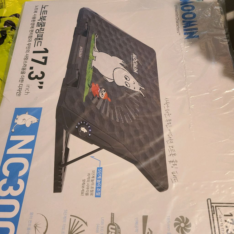 17.3인치 노트북용 무민 스페셜 에지션 한정판. 미개봉으로 포장 상태 그대로 판매합니다. USB 충전 기능과 높이 조절이 가능해서 사용하기 편리해요. 초대형 원팬으로 매우 스무스하고 풍력이 좋다고 정평난 제품입니다.