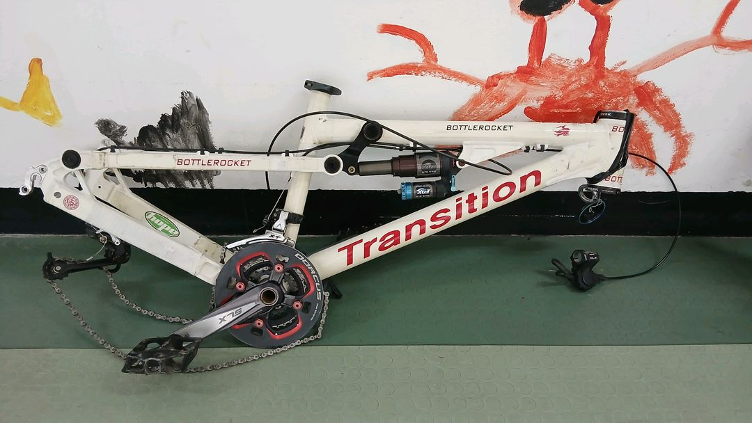 2차. 구매입니다. 트렌지션 보틀로켓 가격 280만원에 판매했던 알루미늄 프레임 입니다 26인치 ㆍ년식은 2012년으로 알고 있고 . 최초구매자가 2016년 조립한걸로 알고 있습니다 재미있게 타 볼려고 구입했지만, 자전거가 많아서 ㅜㅜ 조립 포기하고 판매합니다. 보호 필름이 약간 탈색 되어 지저분하게 보이지만 보호 필름 제거하면 깨끗합니다. 대부분 인도ㆍ자전거도로용으로 사용해서 프레임 누적피론 크지 않습니다. 먹은곳 없고 눈에 띄는 기스도 없습니다. 리어샥 상태는 정확히 모르겠고요? 아마도 정비하셔야 될껍니다. 프레임ㆍ 해드셋ㆍ리어샥 구성으로 판매합니다. 사진상 크랭크 ㆍ변속기ㆍ드레일러 등은 판매에서 제외 됩니다. 가격은 30만원에 판매 합니다. 조립하면 아주~재미있게 탈수 있는 프레임이라 생각됩니다.
