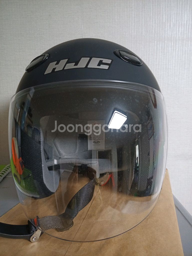 HJC 브랜드 오토바이 헬멧이에요. L사이즈로 깔끔한 블랙 컬러에 클리어 바이저가 있어서 실용적입니다. 사용감은 거의 없고 상태 양호해요! 유리창 경첩에 빨간 거는 그리스입니다. 헬멧 많아서 이거는 몇번 안 썼고 바라클라바 쓰고 써서 내피 깨끗해요~