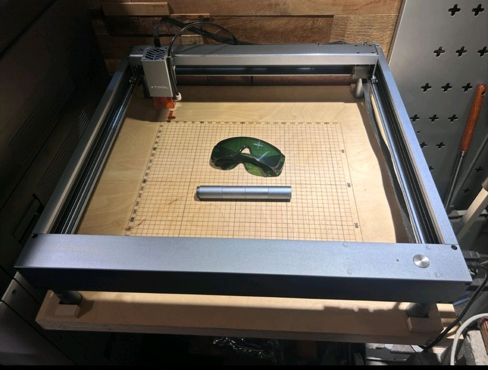 XTOOL D1 레이저 조각기입니다 - 10W 레이저로 다양한 재료에 조각 및 절단이 가능해요 - 작업 영역은 432*406mm입니다 - Laserbox 소프트웨어사용 - 보호경, 에어 어시스트 셋, 로터리 롤러 포함입니다 - D1조각기 130만, 에어어시스트셑 20만, RA2pro 로터리 20만원 정도 해서 180만원 들었고 -자작합판 다이 만들면서 레이저 작업영역 각인해놓아서 작업 편히 할 수 있어요 - 레이저 강도, 속도 별로 조각해놓아서, 조각전에 조절하기 쉽게 샘플 만든것도 같이 드릴게요