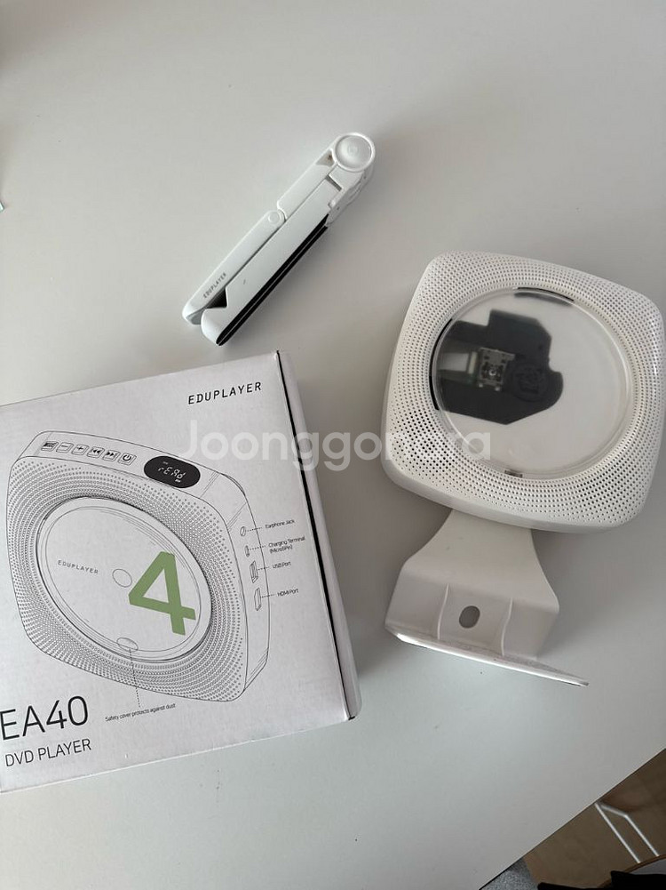 에듀플레이어 EA40 DVD CD플레이어입니다 21년 새상품 구매 CD 넣는 커버가 누르면 확 올라오지 않지만(스프링 문제인듯) 소리 문제없이 잘 나옵니다 구성품 : 본품, 거치대, 박스, 충전기 (케이블은 살짝 망가져서 5핀 아무거나 꽂으면 됩니다. 충전은 되요 원하면 드려요) 택배 +3500 GS반택 +2000 직거래 하남 선동 네고 문의 안받아요 중고 거래 특성 상 반품 불가🙏🏻