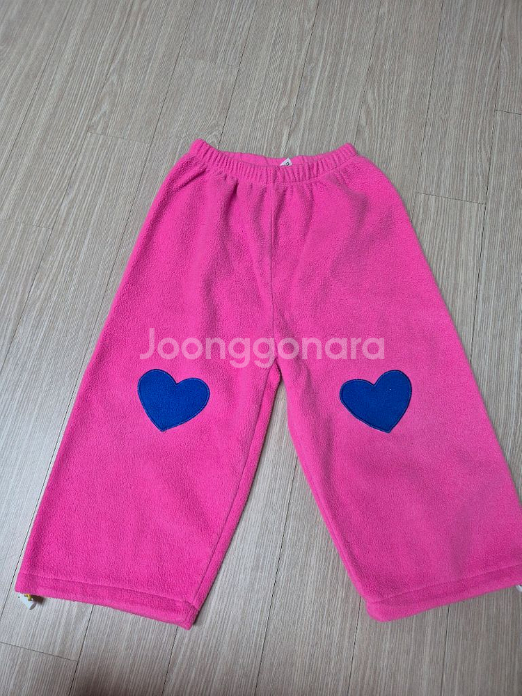 귀여운 핑크색 바지에 블루 하트 패턴이 포인트예요. 채니블라썸 하트핑바지입니다 얼룩없고 깨끗해요 겨울용 기모바지입니다