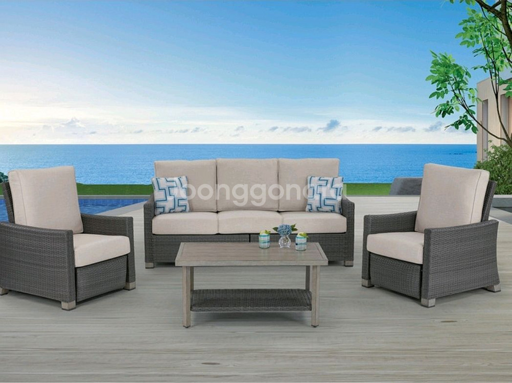 코스트코 샌디 쇼어 4인 야외 소파 정원 소파 세트입니다. 편안한 휴식을 위해 특별히 제작된 고급스러운 디자인입니다. 인근 지역 가져다 드리겠습니다. - 구성품: 3인용 소파 1개, 안락 의자 2개(등받이 포함), 커피 테이블 1개 - 소재:고급 선브렐라(Sunbrella) 소재
