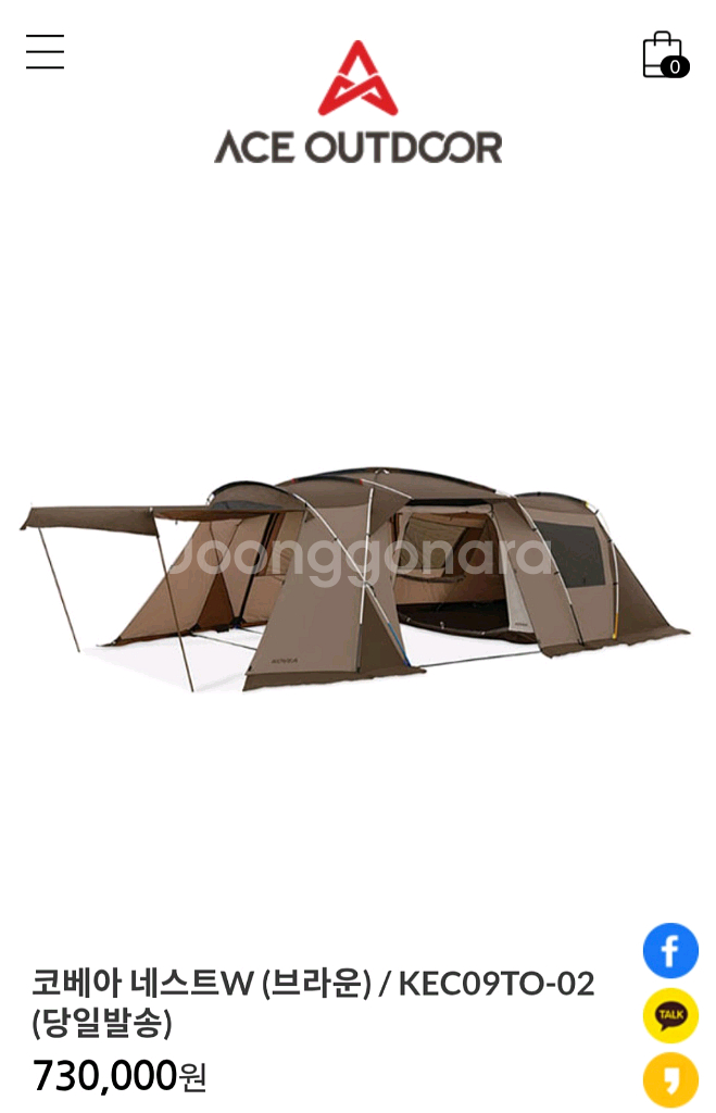에이스아웃도어 코베아 네스트W 대형 텐트입니다. 넓은 공간과 높은 천장으로 캠핑하기 좋은 제품이에요. 상태 양호하고 실용적인 대형텐트 찾으시는 분께 추천드려요! 펼쳐서 사진을 못찍어 아쉽지만 실사용 한번밖에 안한거에요 사용할때도 깨끗하게 사용했고 사진보시면 아시겠지만 정리할때도 깔끔하게 정리해서 보관해놨어요