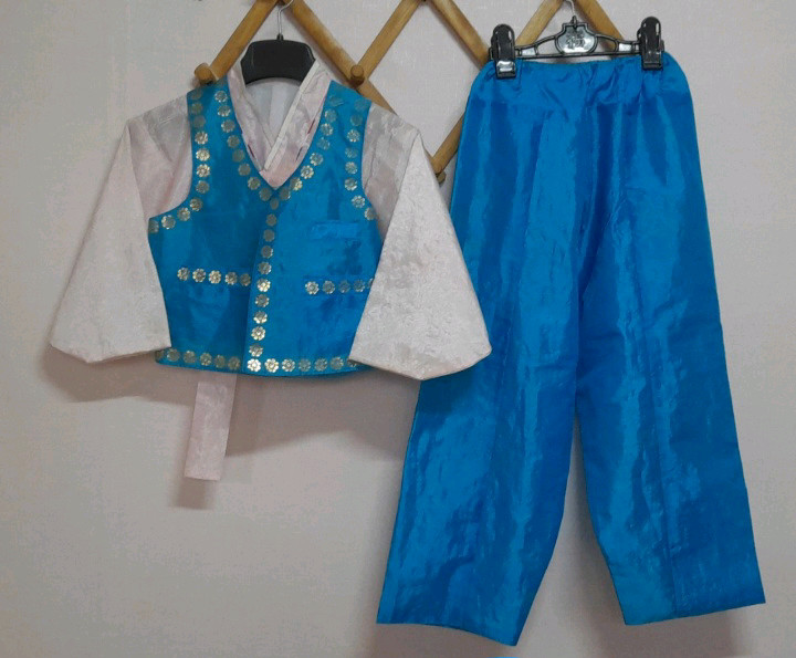진한 블루로 찍히나 실물은 연한블루 할로윈, 복고 이벤트, 작품, 과제, 교육자료, 소장 등 1. 저고리 : 가로 37.7cm x 세로 39cm 2. 바지 : 길이 76cm 수십년전 몇번입고 보관중인 레트로 오래된 거라 낡아서 저고리와 바지는 사진상 안보이는 오염들 있고, 조끼는 1곳만 스크래치 동정도 낡아 새로 다셔야.. 전부 손세탁은 완료 * 환불반품불가 * 배송비 별도 GS&CU 반값택배 1800 일반택배 동일권 3200 타권 3700