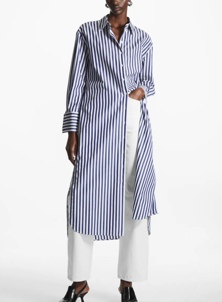 COS 코스 벨티드 미디 셔츠 드레스 38 코스 원피스 (블루 / 화이트 / 스트라이프) 새상품, 우체국택포, 개인거래로 반품불가합니다