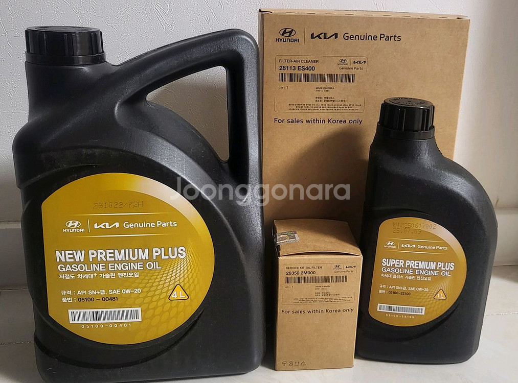 4세대 카니발 하이브리드 1.6 가솔린 엔진오일 세트. 05100-00481 4L 05100-00181 1L , 에어클리너28113-ES400 오일필터 26350-2M000 순정부품이라 안심하고 사용하셔도 됩니다. 구매는 안전결제 진행하심됩니다