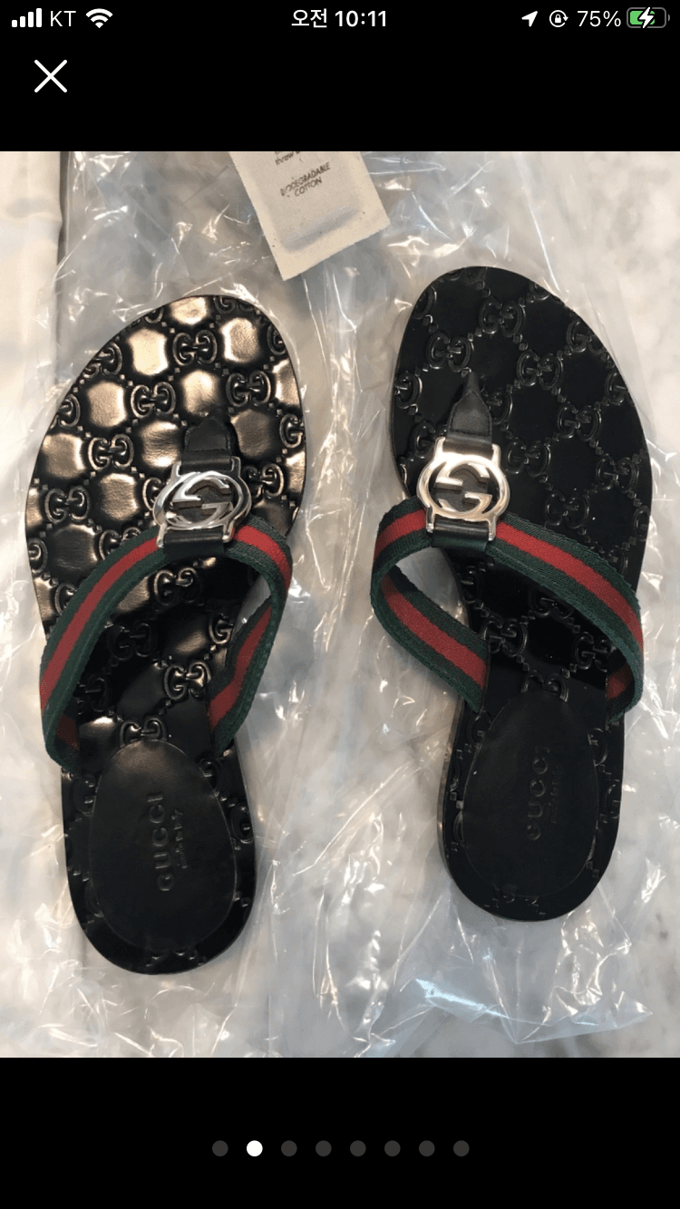 구찌 정품 플립플랍 샌들이에요! 블랙 컬러에 시그니처 GG 패턴과 실버 메탈 장식이 고급스럽고, 박스와 더스트백 모두 포함되어 있어요. 상태 양호한 제품입니다. ●구찌 GG 쪼리 슬리퍼 35만원● 신세계에서 90만원 가까이 주고 구매 세네번정도 백화점에서 쇼핑할때 신어본게 다입니다. 맨날 운동화 신어서 보관만 하고 있어서 판매합니다. 밑창 보강을 안해서 한번만 신고나가도 바닥에는 사용감이 보이게 되지만 사진처럼 보이는 부분은 신경쓰이는 하자없습니다. 34, 35, 36 다신어보고 제 사이즈에 맞는거 확인하고 34사이즈로 구매했어요. 매장에서도 쪼리는 딱맞게 신어야한다고 해서 34로 구매했어요. 사이즈가 크게나와서 34 구매했는데 신발 돌아가는거 없구요. 재판매할 생각이 없었어서 영수증은 없어요 사이즈: 35 구성품: 박스, 파우치 ■직거래 / 택배거래 ■교환 불가, 환불불가이니 신중히 생각하신후 구매 결정해주세요!