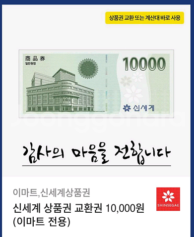 신세계 상품권 1만원권 판매해요! 이마트에서도 사용 가능하고 유효기간 내에 사용하시면 됩니다. 유효기간 26년 2월 15일