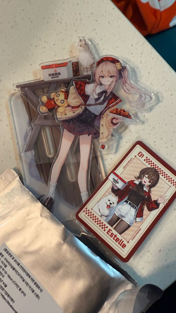 꾸브라꼬 콜라보 이터널리턴 굿즈 레니 아크릴 스탠드와 에스텔 포카 세트입니다. 확인을 위해 개봉만 하였습니다. 쿠폰도 당연히 미사용이에요 문의 없으시면 바로 안전결제해주시면 됩니다!