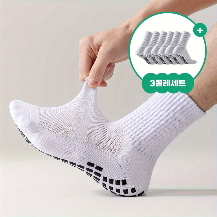 논슬립 스포츠 양말 3켤레 세트. 축구,풋살,배드민턴,테니스,런닝,탁구 등산등 활동적인 스포츠를 할때 너무 좋은 미끄럼 방지 양말! 화이트 컬러에 블랙 밑창 패턴으로 되어있고, 통기성 좋은 메쉬 소재로 되어있어요. 운동이나 일상 착용하기 좋습니다. 논슬립 전국 최저가 자부합니다. 1켤레 - 3,500원 3켤레 세트 - 1만원 택배비 3,000원 별도 010-6520-1020 연락주세요