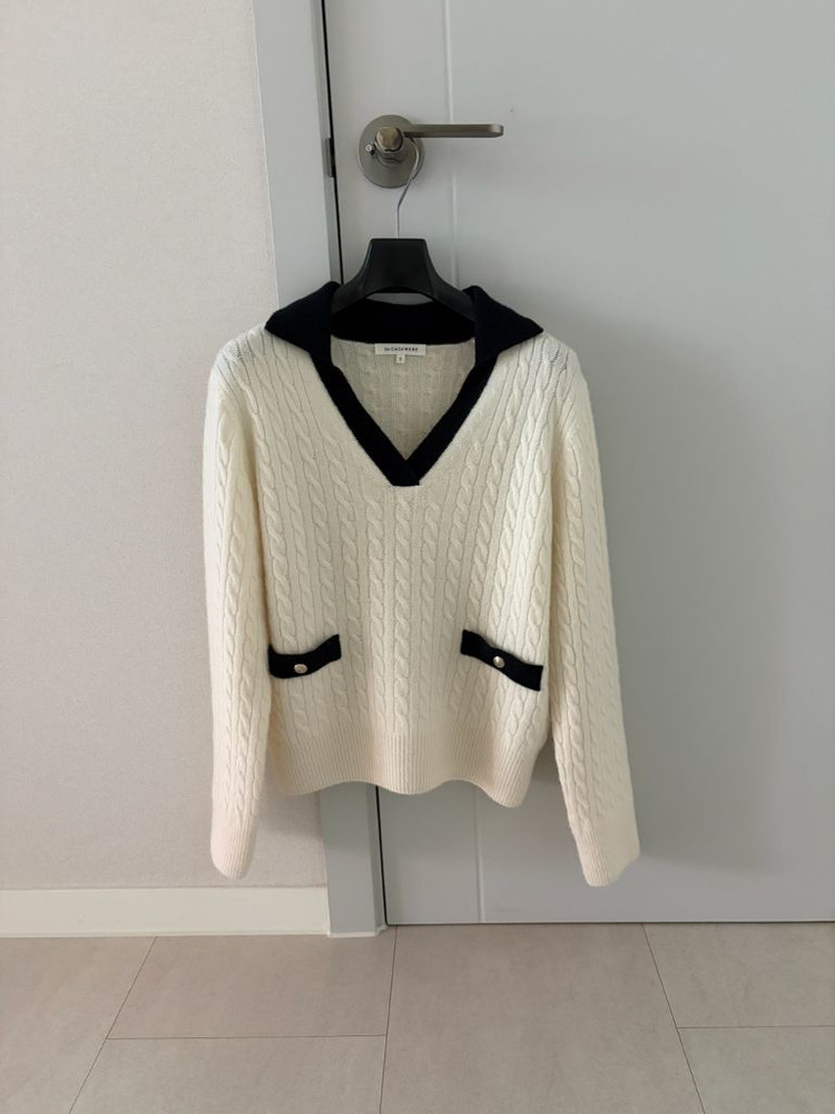 한섬몰에서 한달전쯤 구매한 더캐시미어 니트에요. (구매사진첨부) 405,000원에 구매했구요, 지금 아울렛에도 잇을텐데 인기제품이라 아마 다 품절일거에요. 화이트, 85사이즈로 약간 아이보리띄는컬러에 카라는 짙은네이비에요. 캐시미어100%로 폭신폭신하니 앞으로 입으시기좋아요. 한섬몰 들어가시면 후기사진들많이잇으니 참고부탁드립니다. 2번입고 보관한터라 상태좋아요. 이번달 산게많아서 내놔봅니다.. 올나감트임보풀등등 없어요. 상태넘좋아요. 택배비포함금액입니다.