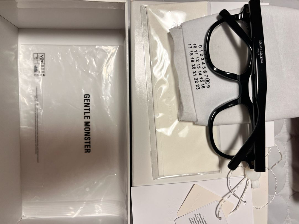 메종 마르지엘라와 젠틀몬스터 콜라보 mm010 안경입니다. 현재 크림시세 87만원이네요. 시세대비 아주 합리적인 가격에 판매합니다. 5회정도 착용했는데 얼굴형이 저랑은 안어울리네요..ㅠㅠㅠ 구성품은 안경, 케이스, 박스 , 인증서케이스는 있는데 인증서를 잃어버렸네요ㅠㅠ 도수렌즈끼고 착용했었으나 안경점에서 새제품 당시 클리어렌즈로 다시 교체해두었습니다.