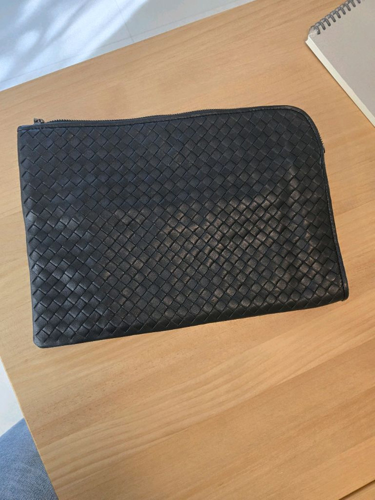 보테가베네타 정품 위빙 패턴의 블랙 클러치백이에요. 깔끔한 상태로 고급스러운 가죽 소재와 세련된 디자인이 매력적입니다. 실용적인 사이즈로 데일리나 특별한 날 모두 활용하기 좋아요. 구성 가방만 있어요