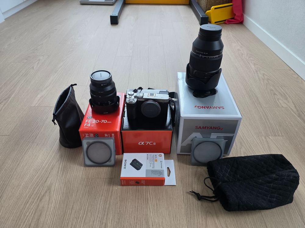 소니 A7C2 실버 + 삼양 35150 판매합니다. (사진에 있는 2070g는 판매완료입니다) 모두 2025년 9월 17일 구매/정품등록 하였고, 3,000컷 정도 사용하였습니다. 보증서, 파우치 등 박스 풀이며, UV 필터 포함해서 드립니다. 2개 제품 일괄로 구매하시면 300만원에 드립니다. 1. A7C2 실버 - 가격 : 210만원 - 구매 : 2025년 9월 17일 - 정품등록 되어 있으며, 판매 시 바로 해지해 드립니다. - 3,010컷 사용하였습니다. 3. 삼양 35-150 - 가격 : 105만원 - 구매 : A7C2와 동일 - UV 울트라 슬림필터 같이 드립니다. - 사용량은 A7C2와 동일합니다. 가급적 서울 근교에서 직거래 희망하며, 계약금 주시는 경우 제가 가드립니다. (오시는 경우 서울새내 역에서 거래 희망합니다) 010-5468-6847로 문자 먼저 부탁드립니다.