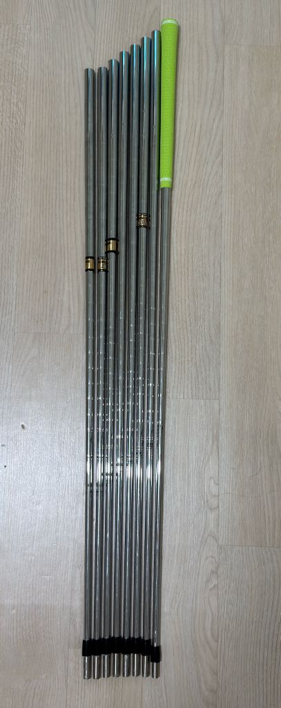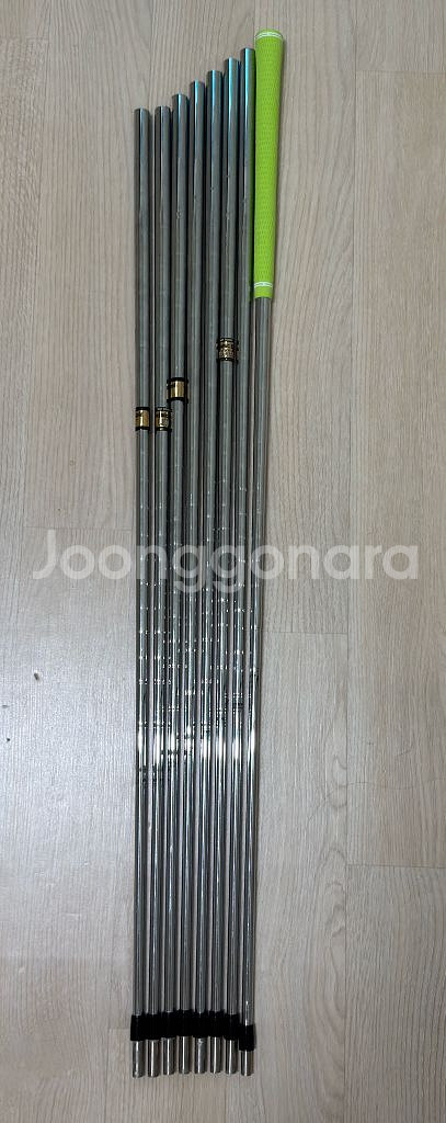 Dynamic gold Lite r400 아이언 샤프트 (3-p) 115g정도입니다 s200부담스러우시면 딱 좋을 것 같습니다 상태는 사진과 같이 양호합니다 가볍고 탄성이 좋아 비거리에 도움이 됩니다 3번 아이언은 제가 그립교체 진행햇는데 제거하셔도됩니다. 그립은 쿠팡에서 산그립인데 나쁘지 않습니다 링크 알려드릴께요