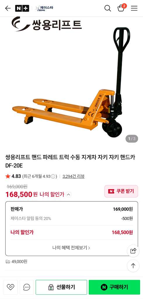 개인정보(거래정보)를 주고받는 행위는 사기에 노출될 수 있으므로 즉시 중고나라로 신고해 주세요쌍용리프트 핸드 리프트 쟈키 자키 판매합니다! 택배비 포함 21만 8천원구매했는데 저희 직업상 무게가 부족해 몇번 사용안하고 판매합니다! 2톤까지 가능합니다 견고한 강철 프레임으로 제작되어 내구성이 뛰어나고, 작동이 쉬워서 편리하게 사용 가능합니다